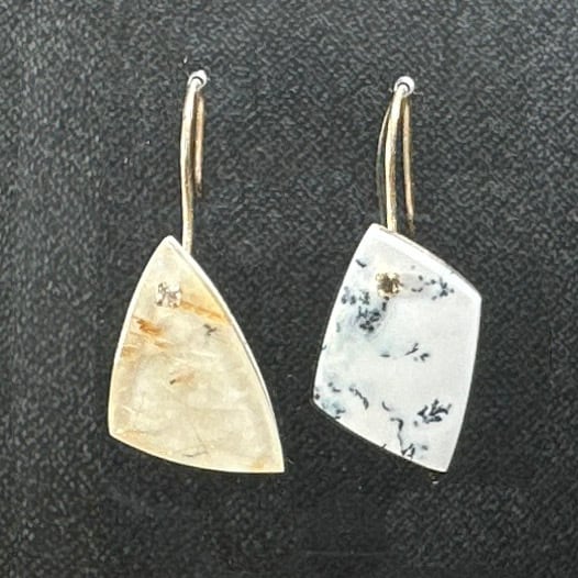 片面はデンドリッククォーツ、片面はルチルでアシンメトリーなピアスをお楽しみいただいたり