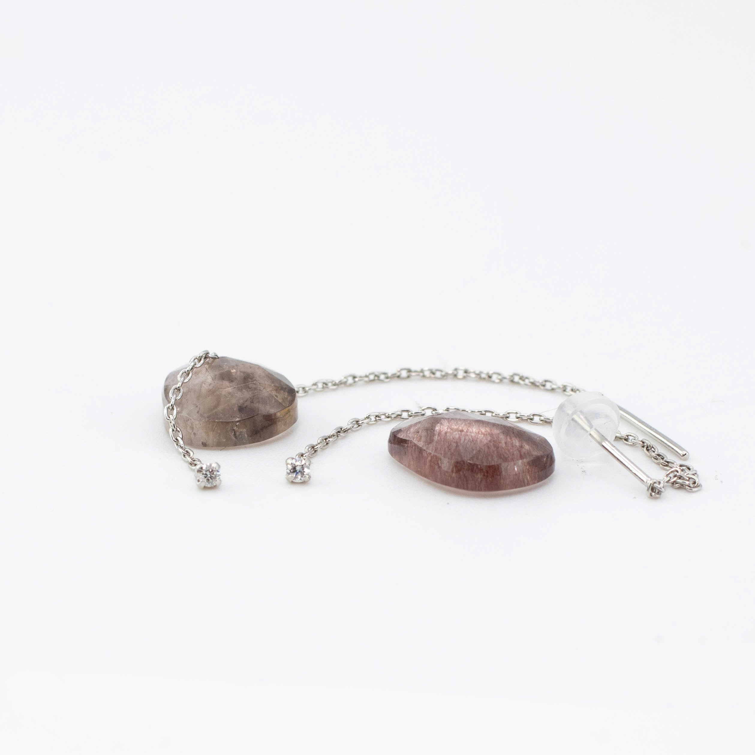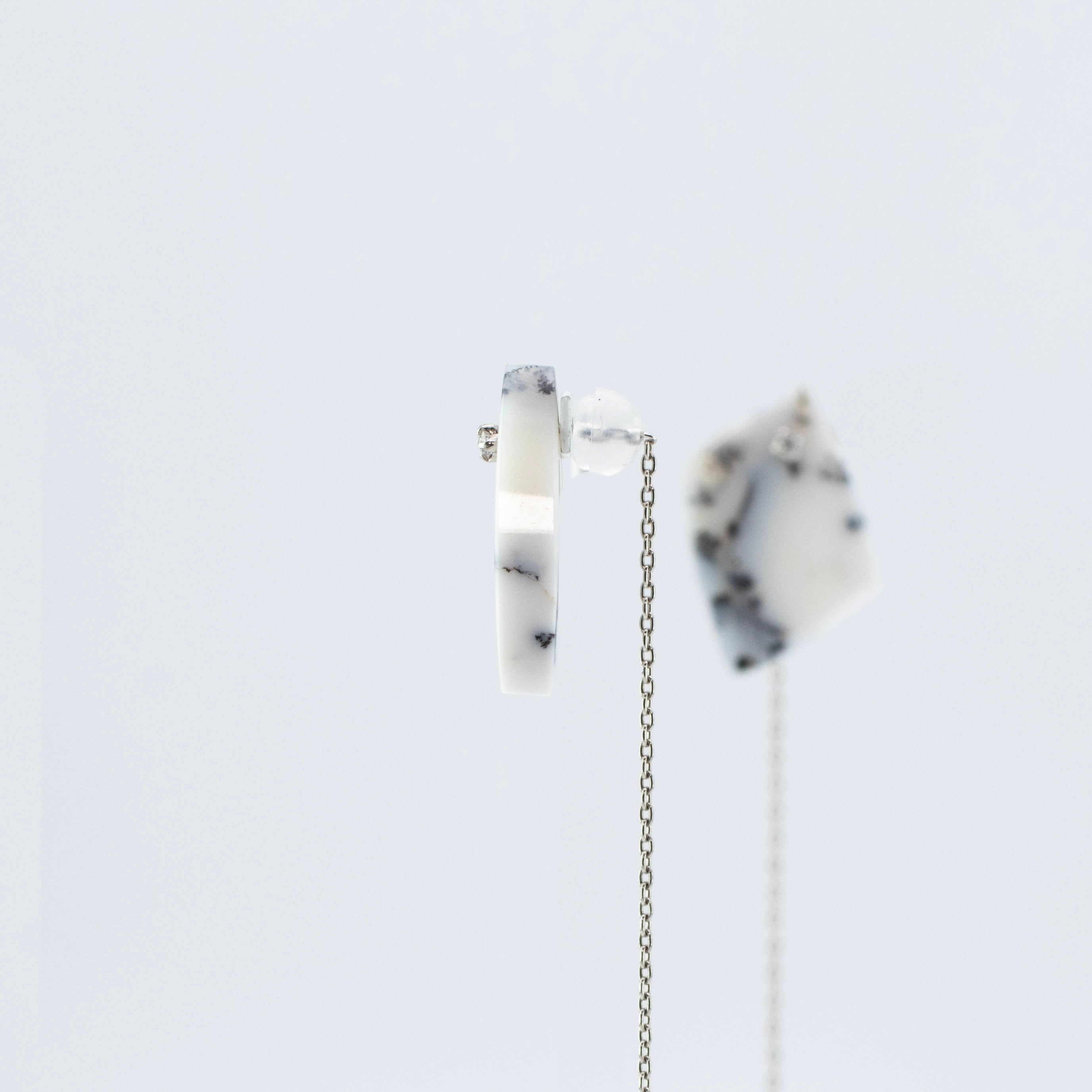耳元にピタッと固定されるシンプルスタイル。石の存在感をダイレクトに引き立て、日常使いにも最適です。