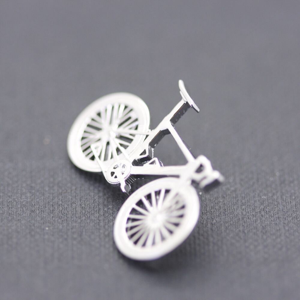 本物のロードバイクのジオメトリーから、そのままCADデータを作りました。 キャスト製法の表現力の中で許す限り細部に拘りました。 シルバー925で、ラペルピンです。 仕上げにロジウムメッキ(プラチナと同じ仕上げ)をしてあります。 自転車愛好者の皆様に ジャケットなどの襟元に、取り付けると、グッとオシャレ感が…ロードバイクに乗っている事をさり気なくアピールできますよ