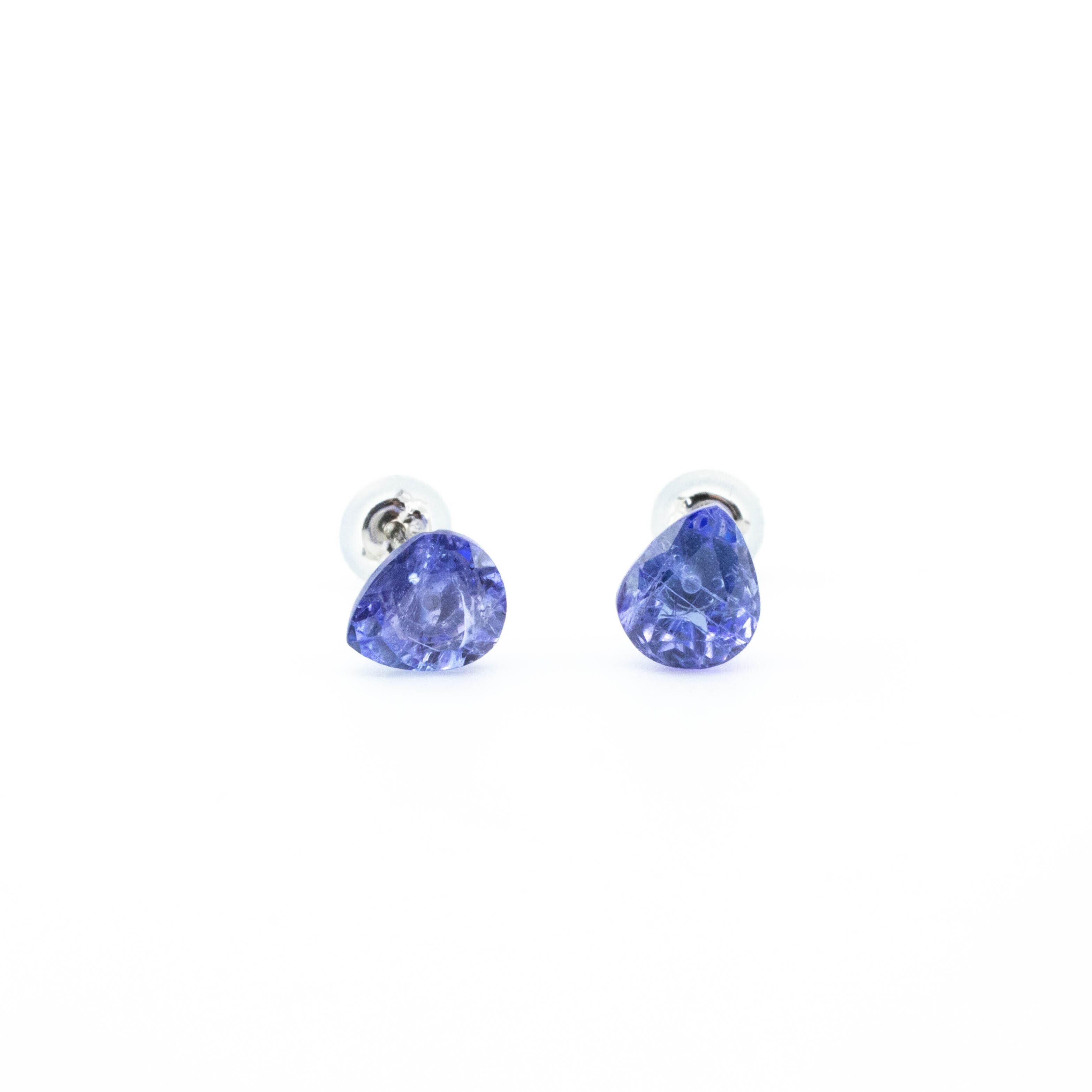 #hachibar 預かりタンザナイトルースの裏で中心部分を少しだけ平に面を取って、そこに0.7mm穴を開ける Pt900 皿付きポスト0.7x12.5mm 1セット 接着加工 キャッチ付き 質問などお気軽に!